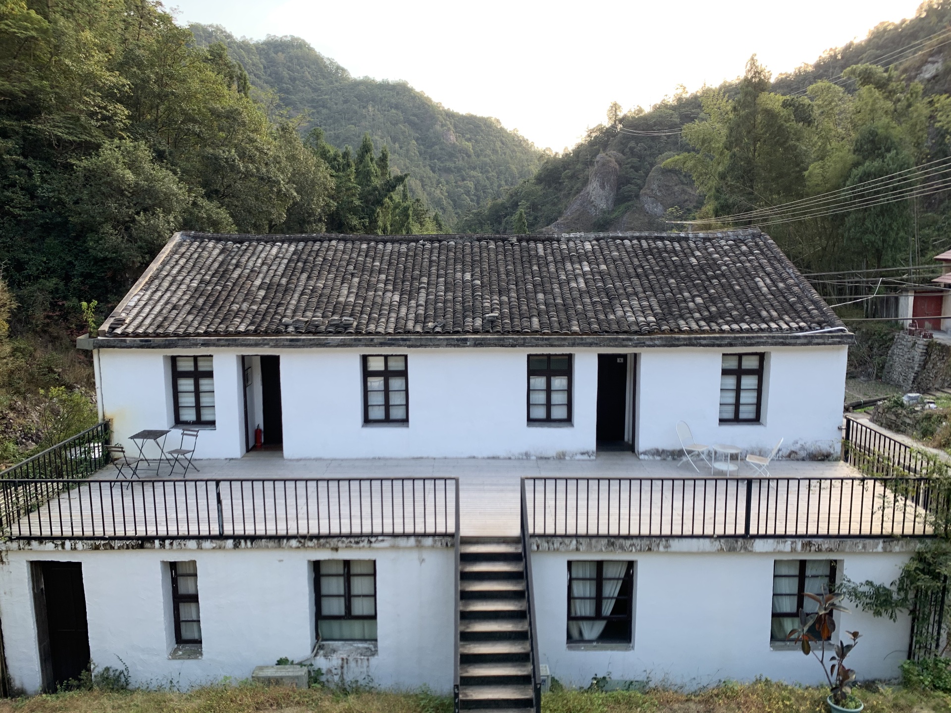 南方天气很好,10月底还有点热,但空气又没那么干。民宿是在雁荡山的森林公园景区内。门口就是一条可以下山的公路。旁边没有别的村民房屋,但是离村子又很近。既不会喧闹,也不至于偏僻。
