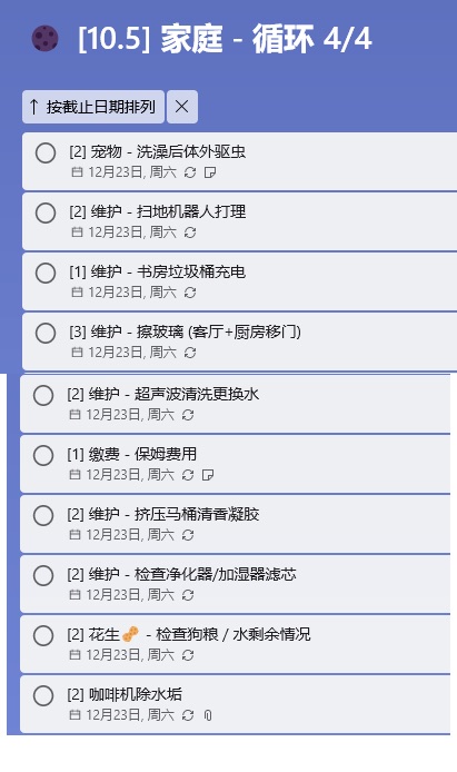 我(惊呆脸):这点我也要向你学习 L:以上都是 循环的家务,然后笔记工具里,还有跟踪一些一次性的 家政事件: