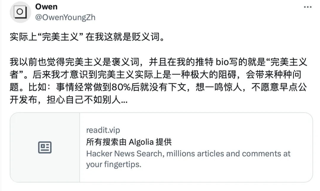 昨天看到少数派的一篇文章《选题、专业性、完美主义、数据和灵感,这些创作焦虑该如何应对?》正好应对了我最近一段时间创作上的焦虑,读完还是有一些收获的。下面是我在 flomo 上记录的读后心得(做了一些调整和扩充)。