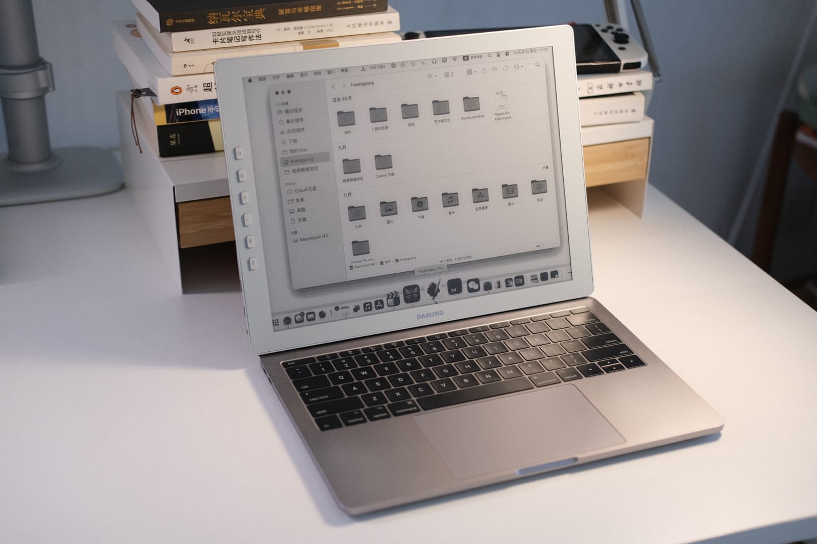 最后也是最值得斟酌的一点:**两块屏幕真的比一块屏幕更高效吗?**现在的我对此持怀疑态度。或许一台墨水屏的 Mac 笔记本或者配有键盘的 iPad,在文字读写场景下会更有效率并且护眼。